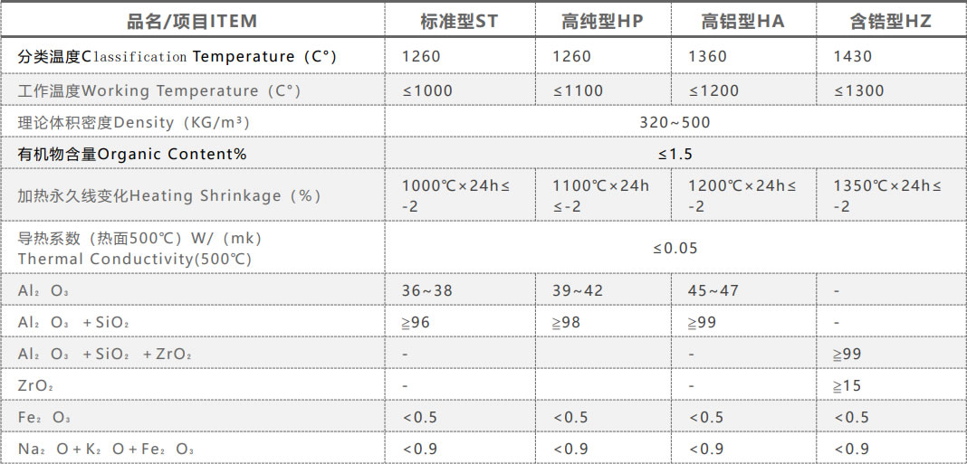 陶瓷纖維無(wú)機(jī)板技術(shù)參數(shù)